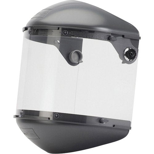 Made from Noryl®, the same material used in Honeywell® welding helmets 4" crown with Quick-Lok 4001 mounting cups High Performance faceshields are...