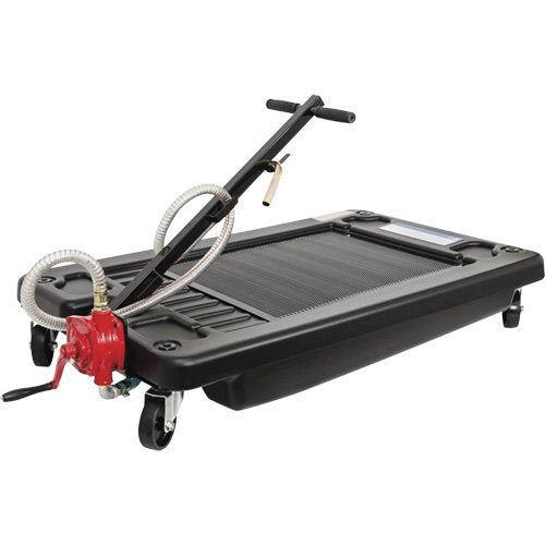 Ideal for draining oil where a pit or hoist is not available 17 US Gallon tank with integrated baffle captures oil and minimizes spillage during t...