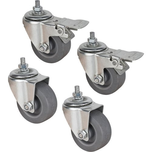 Wheel material: Polyurethane Wheel diameter: 2-1/2" Thread width: 1" Set includes two swivel casters, two swivel casters with brake and hardware F...