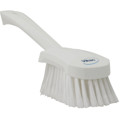 Short and strong handle increases maneuverability and durability Hand guard makes cleaning machinery safer Medium bristles are strong enough to sc...