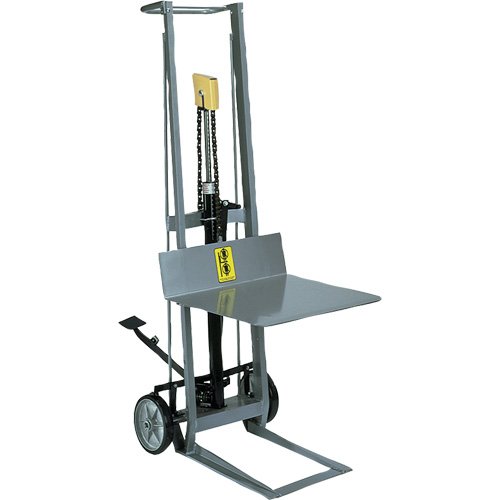 Foot operated hydraulic pump raises platform and foot release lowers platform Aluminum construction for lightweight ruggedness Specifications Lif...
