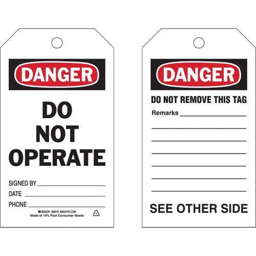 Tags can be personalized by writing on special instructions, hazards or warnings B-851 Rigid Economy Polyester with brass grommets, exceeds OSHA's...