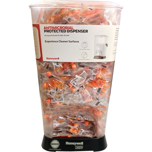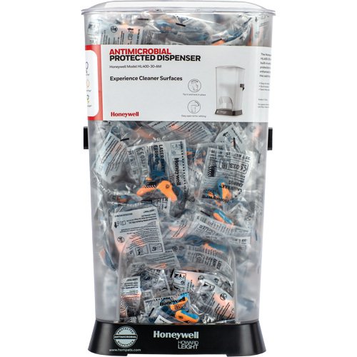 New easy-refill lid allows for quick dump & go of bagged earplugs 400 pair capacity means less time spent on resupplying Catch tray treated wi...