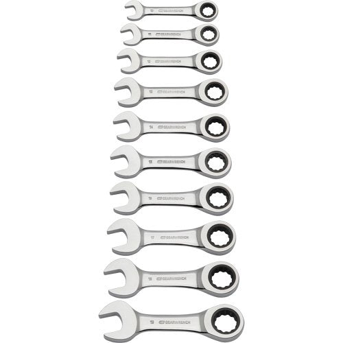 Metric 10-piece set 10 mm to 19 mm Ratcheting box end needs as little as 5° to move fasteners Up to 25% more torque with less fastener rounding Pa...