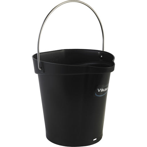 A durable pail that is suitable for cleaning or storage of ingredients and food stuff, and is calibrated for a variety of measuring units Flat bac...