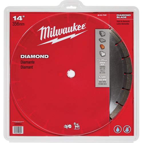 Designed for concrete cutting Can be used wet or dry Fast cutting Specifications Diameter: 14" Arbor Size: 1" Application Type: Concrete Addition...
