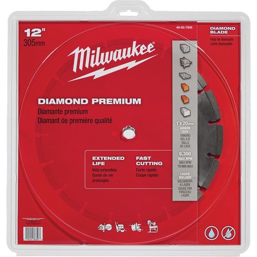 Extended Life Can be used wet or dry Fast cutting Laser welded Ideal for cutting concrete, brick, and block Specifications Diameter: 12" Arbor Si...