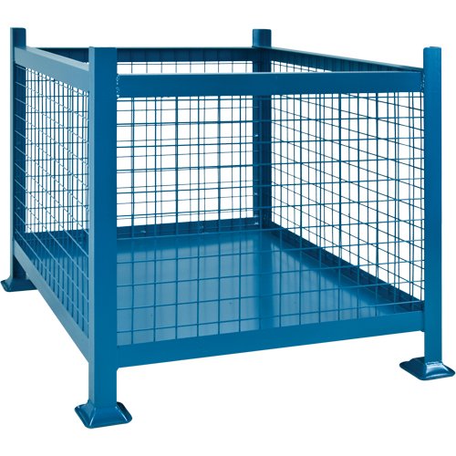 Heavy-duty all-welded construction All containers use a 13-gauge corrugated sheet steel base 2" x 2" x 3/16" angle posts 4-way fork truck entry wi...