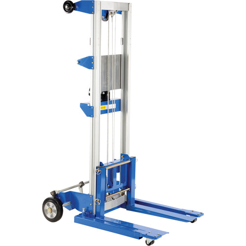Compact lift trucks are designed to lift material to and from shelves Constructed of durable steel-and-aluminum The rugged 4" wide by 1." thick st...