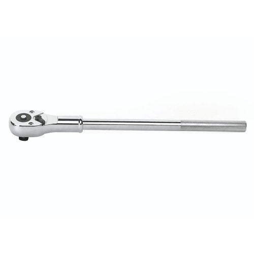 24-tooth full polish chrome quick-release ratchet Full polish chrome sockets with large hard-stamped size markings Knurled full polish chrome exte...