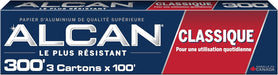 - STANDARD ALUMINUM FOIL PAPER—This package contains three rolls of ALCAN aluminum foil, measuring 100 feet long by 12 inches wide CANADA’S #1 ALUMINUM FOIL WRAP BRAND—Backed by over a century of quality and strength, ALCAN Aluminum Foil is the trusted kitchen staple for generations of home and professional cooks