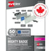 The Mighty Badge by Avery. Create custom, professional name badges on demand in just minutes with a laser printer. All-in-one magnetic name tag kit includes 50 silver-coloured steel plates, 50 durable magnetic fasteners, 50 crystal-clear, shatter-resistan