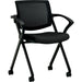 Offices To Go Gennex Nesting Guest Chair with Arms. Multi-purpose guest chair featuring a flip up seat, allowing chair to stack/nest horizontally for easy storage. Soft self-skinned polyurethane arms and dual wheel carpet casters. Durable black steel fram