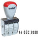 Trodat 1000 Daters have a 3mm character size. Sturdy steel frame; twelve-year band. Lifetime Warranty on mechanism. Use with a stamp pad (sold separately).