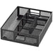 Merangue mesh drawer organizer. Drawer organizer with 6 compartments. 2 small; 3 medium; 1 large section. Wire mesh material. 9-1/4" x 7-1/4" x 2-1/4". Black.