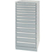 - Drawers 1 to 2 : 24 divisions, 2" H; Drawers 3 to 4: 20 divisions, 2" H; Drawers 5 to 6: 24 divisions, 3" H; Drawer 7: 20 divisions, 3" H; Drawers 8 to 10: 12 divisions, 5" H; Drawers 11 to 12: 9 divisions, 5" H