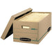 Bankers Box Earth Series Enviro Stor Storage Box. 900 series. 100% recycled material. Double end, single wall, double bottom construction. For moderate stacking or for use with shelving. Lift-off lid for frequently accessed files. 450 lb. stacking strengt