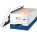 Bankers Box Presto Strage Box. Instant assembly, just push the corners together and the box is ready for use. Heavy-duty, double end, double side, double bottom construction for stacking, storage, and transport you can trust. Reinforced tear-resistant han