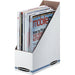 Bankers Box Stor/File Magazine File. Sturdy white corrugated construction for moderate use. Holds standard letter size materials. Ideal for use on shelf, desk, or counter. Contains a minimum of 50% post-consumer recycled material. 4.13"W x 9.5"D x 12"H. L