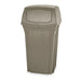 Rubbermaid Ranger classic trash container features famous durability, modern styling and easy-to-service design. Ideal for high-capacity waste management. Permanently attached hinged lid offers easy emptying. This container also has two hinged doors for w