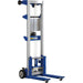 - Hand-crank winch features a reversible handle and a hold-down device for securing the carriage during transport