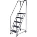 - Four spring-loaded swivel casters retract under the operators weight, rubber-tipped feet drop down