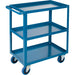 • Cart constructed from 14-gauge steel shelves welded to 1 1/2" x 1 1/2" x 1/8" steel angle posts