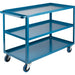- Cart constructed from 14-gauge steel shelves welded to 1-1/2" x 1-1/2" x 1/8" steel angle posts