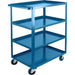 - Cart constructed from 14-gauge steel shelves welded to 1 1/2" x 1 1/2" x 1/8" steel angle posts