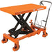 - Ergonomic push handle with easy to use release handle to lower the platform