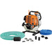 - Hose kit features 10' suction hose, 25' of discharge hose, garden hose attachment, strainers, and connectors