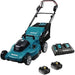 - Includes: (4) 18V LXT 5.0 Ah Li-Ion Battery BL1850B (196675-2); (1) Dual Port Charger; (1) Blade Set (191V96-5); (1) Rod 6 (327589-6); (1) Mulching Plug (413945-7); (1) Socket Wrench 17 (782210-8)