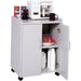 - Wood laminate construction, double-door design with a fixed interior and storage shelf, a large heat-resistant counter top with a 1 1/4" raised lip to catch spills