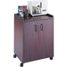 - Wood laminate construction, double-door design with a fixed interior and storage shelf, a large heat-resistant counter top with a 1 1/4" raised lip to catch spills