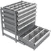 - Features (1) 4" drawer with 20 compartments, (2) 5" drawers, 12 compartments, (1) 6" drawer with 12 compartments, (2) 8" drawer with 9 compartments