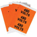 • Made of self-sticking vinyl material, our black on bright orange voltage markers are mounted on pocket-sized cards so they are convenient to carry