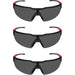 - The safety glasses feature comfortable temple arms designed for extended wear