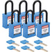 - Nylon padlocks with plastic shackles are lightweight, non-conductive, non-sparking and ideal for electrical or general lockout applications