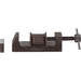 • These clamps are useful in layout work or for holding work securely in drilling and other similar operations. Each clamp is furnished with two take-up blocks that slip on the end of the screw. The blocks are held to allow a slight swivel action which conforms the angle of the block to the shape of the work being held. There is a hole in the base of the clamps so that they may be fastened to the bench and used as a small vise. Clamps are made of case-hardened steel and are smoothly finished.