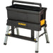 - Elevated tote prevents bending for grabbing tools