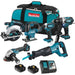 - Includes: 18V LXT 1/2" Hammer Drill-Driver (DHP458Z), 18V LXT 1/4" Impact Driver (DTD152Z), 18V LXT Brushless 4-1/2" Angle Grinder w/Thumb Switch (DGA454Z), 18V LXT Reciprocating Saw (DJR186Z), 18V LXT 6-1/2" Circular Saw (DSS611Z), 18V LXT Brushless Jig Saw w/D-Handle (DJV184Z), 18V LXT Battery, 4.0Ah x2 (BL1840B), 18V LXT Rapid Charger (DC18RC), Tool Bag (831284-7)